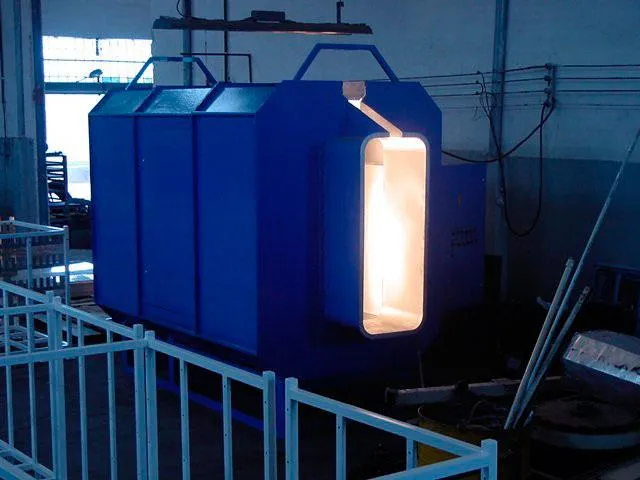 Na estufa contínua é instalada cortina de ar nas silhuetas de entrada e saída das peças, reduzindo consideravelmente a perda de calor para o ambiente reduzindo assim o consumo de energia para aquecimento do ar.