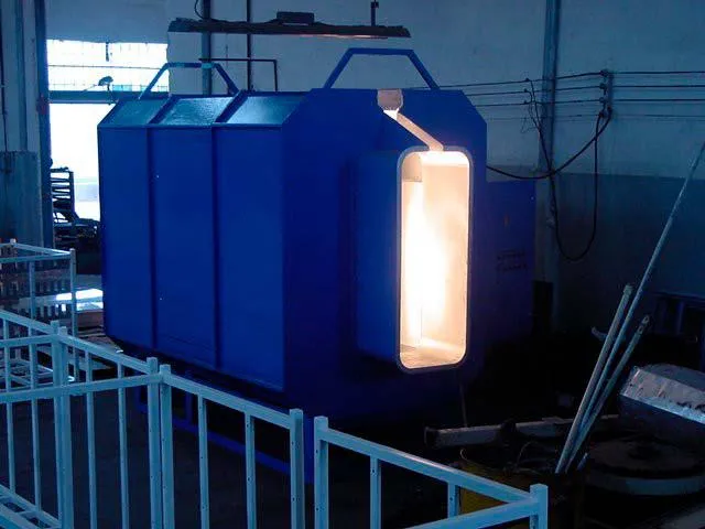 Na estufa contínua é instalada cortina de ar nas silhuetas de entrada e saída das peças, reduzindo consideravelmente a perda de calor para o ambiente reduzindo assim o consumo de energia para aquecimento do ar.