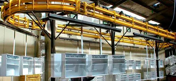 O transportador aéreo para pintura é um equipamento largamente utilizado na indústria de um modo geral onde há necessidade de automação da linha de pintura, seus componentes para compor um layout normalmente são padronizados facilitando a substituição de peças em caso de manutenção ou ampliação de layout.